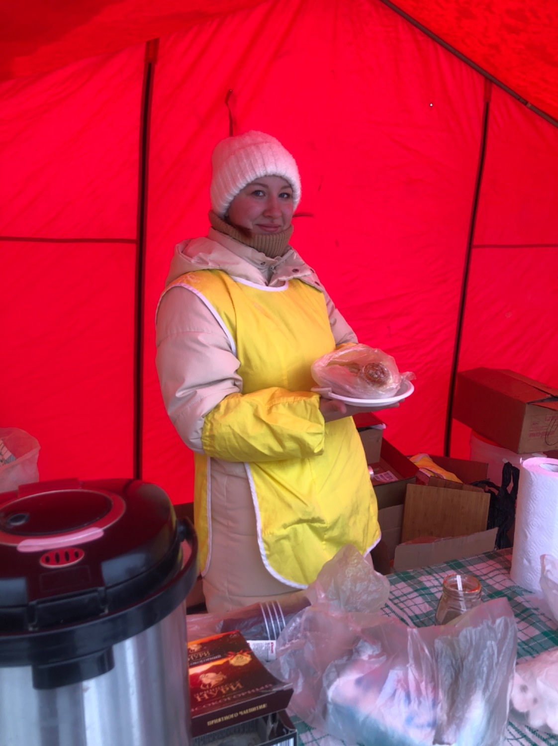 И завершающим аккордом этого снежного, вьюжного, но такого теплого и праздничного дня стало угощение ухой по-озёрски. Традиционный горячий рыбный суп из полевой кухни понравился всем.