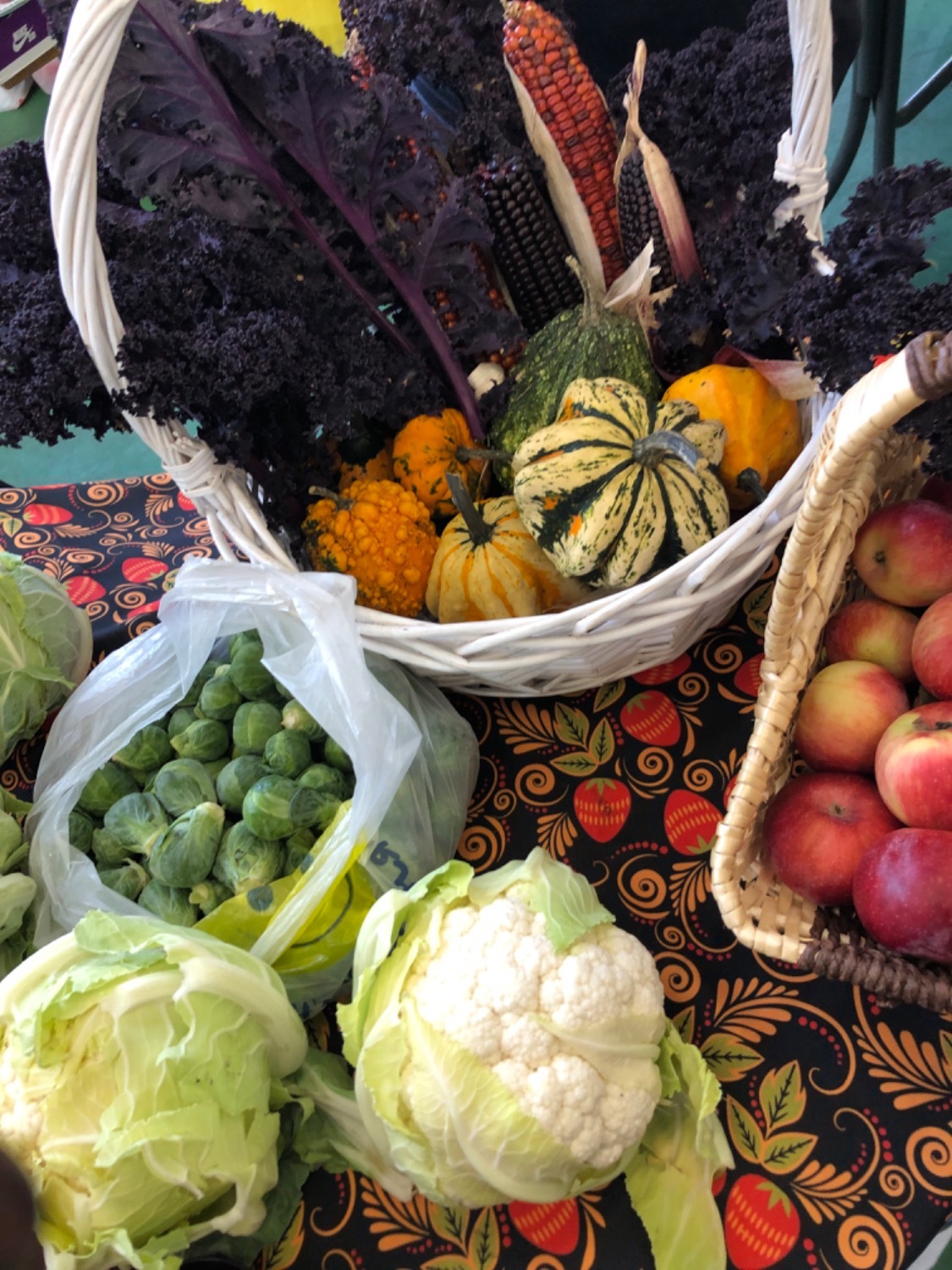 Раскупили и овощной прилавок от 3 Б класса. Семья Кувутс привезла на ярмарку необычные тыквы, листовую , цветную и брюссельскую капусту, кукурузу, свежие огурцы из своего фермерского хозяйства.