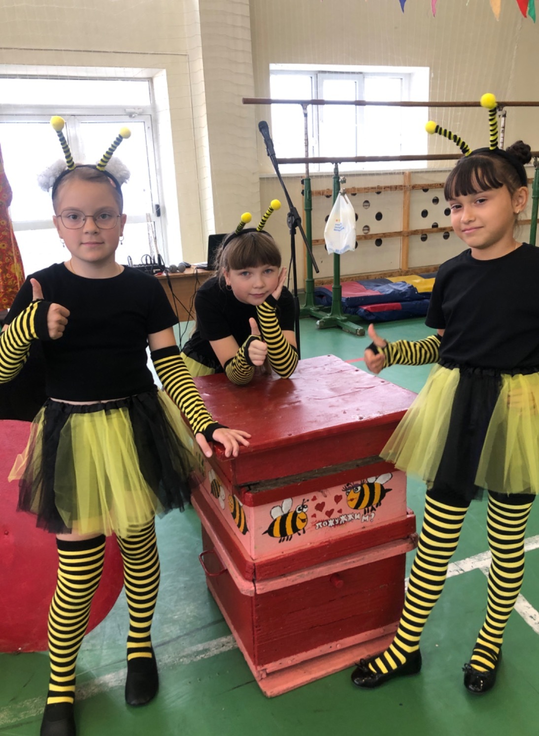 По традиции, состоялось и театральное представление с пчелами, медведем и охотником, после чего директор школы Ирина Ивлиева дала старт празднику.