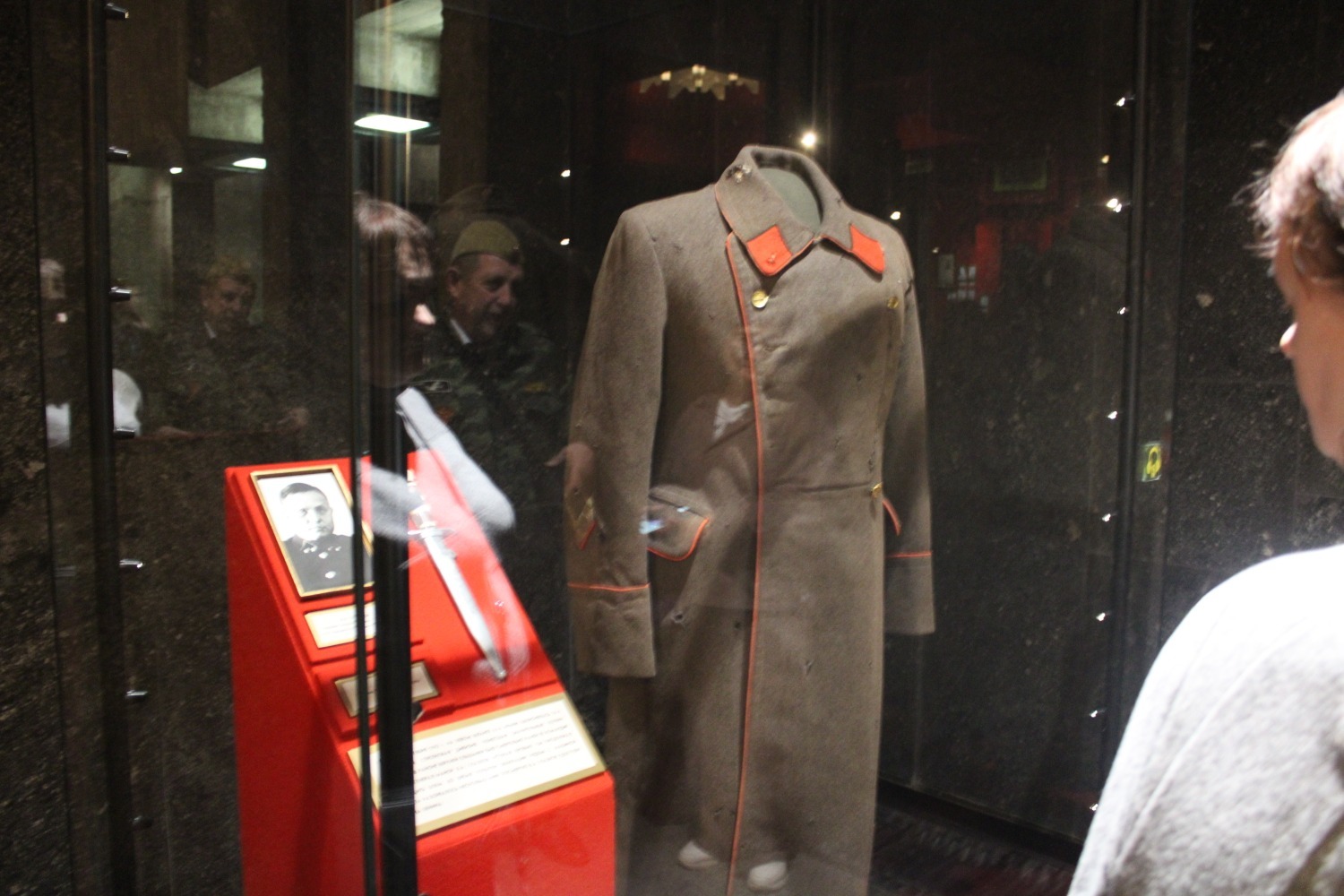 А также - серую шинель нашего земляка, генерала-майора Василия Андреевича Глазкова, пробитую более сотнями пулями и осколками.