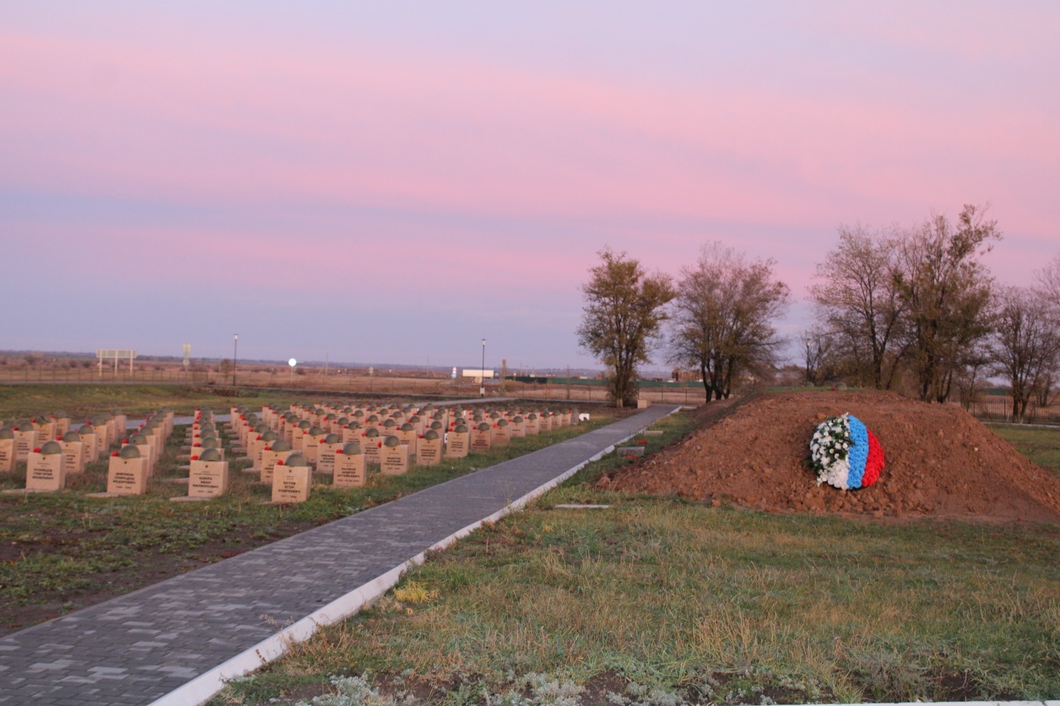 Военный мемориал в Россошках стал конечной точкой патриотического маршрута. После насыщенной программы поездки, проливного дождя на Площади Памяти, резкого ветра на Мамаевом Кургане, кладбище встретило нас умиротворенными и теплыми красками заката.