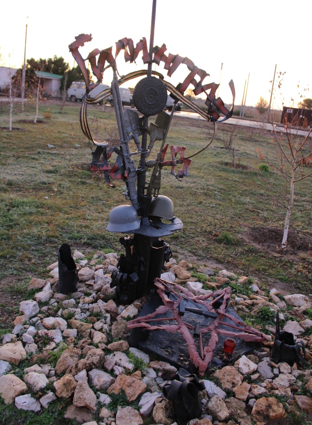 В память о замученных красноармейцах рядом с мемориальным кладбищем был установлен знак, сплавленный из найденных в полях ружей, касок и мин.